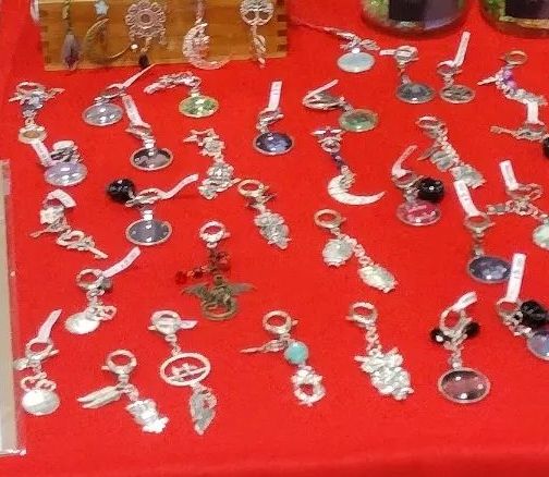 Back to the event. Saturday was busy and I sold 8 books! A couple of mugs, a piece of artwork, a sticker and many charms for the first day as well. Sunday was quieter and I sold 1 book, a mug and a few charms. I call them charms because they are quite keychains. I repurpose jewelry or broken jewelry into these charms. Lots are one of a kind.