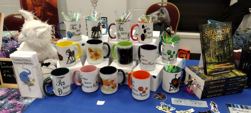 I’ll be selling my mugs at Nampa’s Farmers Market. Not sure about Gem State though. It’s going to be tricky since I’ll be volunteering Saturday. Gem State Comic con is up next for me! Sunday I’ll be vending with the Treasure Valley Fantasy Authors. Chris and Merri will be there both days. I hope Chris will. He wasn’t feeling too good during Border Town.😔